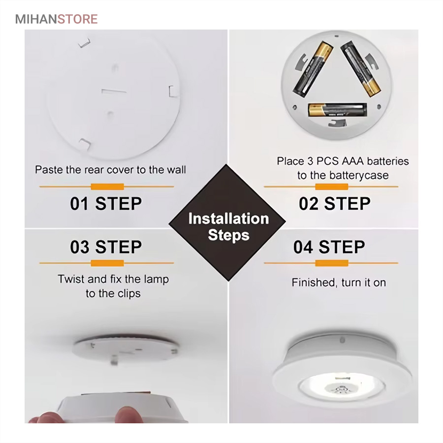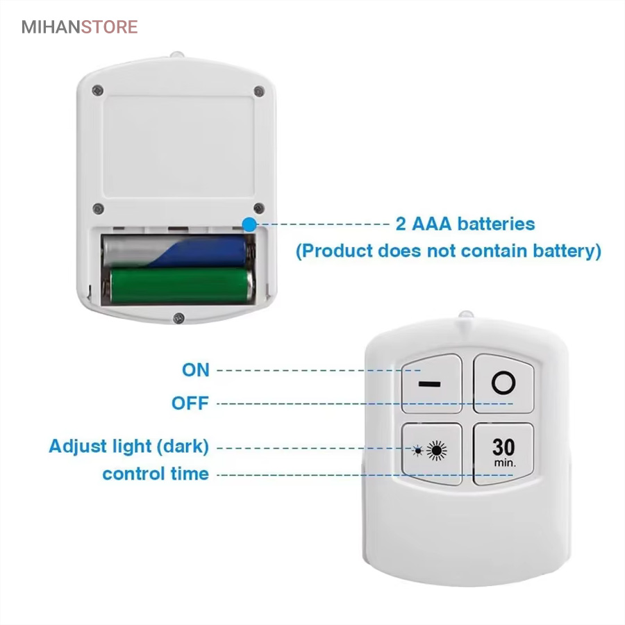 چراغ‌ها با استفاده از کنترل از راه دور با برد ۵ تا ۱۰ متر یا به صورت دستی از طریق فشردن قسمت مرکزی هر چراغ روشن و خاموش می‌شوند. در نتیجه حتی اگر چراغ در مکان مرتفع یا دور از دسترس نصب شده باشد به‌راحتی می‌توان از راه دور آن را کنترل کرد. طراحی بدون سیم باعث شده است که این چراغ‌ها برای نصب در هر مکانی مناسب باشند. نیازی به هیچ‌گونه سیم‌کشی یا اتصال برق نیست؛ تنها کافی‌ست ۳ عدد باتری AAA (برای هر چراغ) تهیه کنید و آن را در جای دلخواه بچسبانید.
