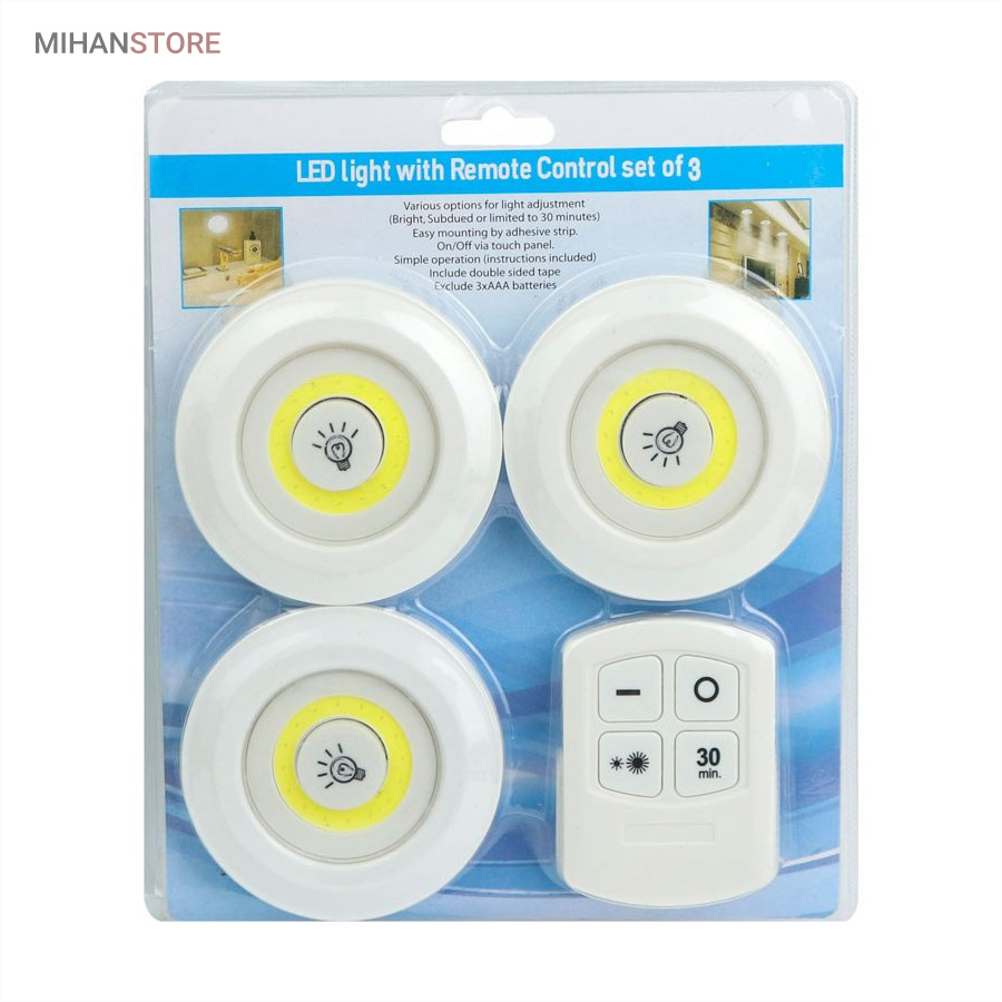 این پک لامپ LED شامل سه عدد لامپ اضطراری LED به علاوه یک ریموت کنترل است که میتوان آن را در سقف یا دیوار نصب کرد و هنگام قطع برق به عنوان چراغ اضطراری از نور آن بهره برد.  این لامپ ها هر کدام با سه عدد باطری نیم قلمی AAA کار میکنند و توسط دکمه روشن خاموش روی لامپ و یا ریموت همراه آن قابل کنترل است. یکی از مزایای چراغ اضطراری سقفی دیواری ریموت دار مدل 3in1 داشتن حالت 30 دقیقه‌ است. به این صورت که با فعال شدن این حالت، چراغ ها بعد از 30 دقیقه به طور خودکار خاموش می‌شوند.  از ویژگی های این چراغ سه حالته بودن لمسی و ریموتی و تایمر دار می باشد و همچنین شدت نور لامپ ها در دو نوع شدید و ملایم قابل تغییر است. این مجموعه شامل سه عدد چراغ COB LED با نوردهی بسیار بالا و یکنواخت است که هر یک از آن‌ها دارای قابلیت تنظیم شدت نور در دو حالت ۲۰ لومن (کم نور) و ۴۰ لومن (پرنور) می‌باشند. این قابلیت به شما امکان می‌دهد تا میزان روشنایی را بسته به نیاز خود تنظیم نمایید.